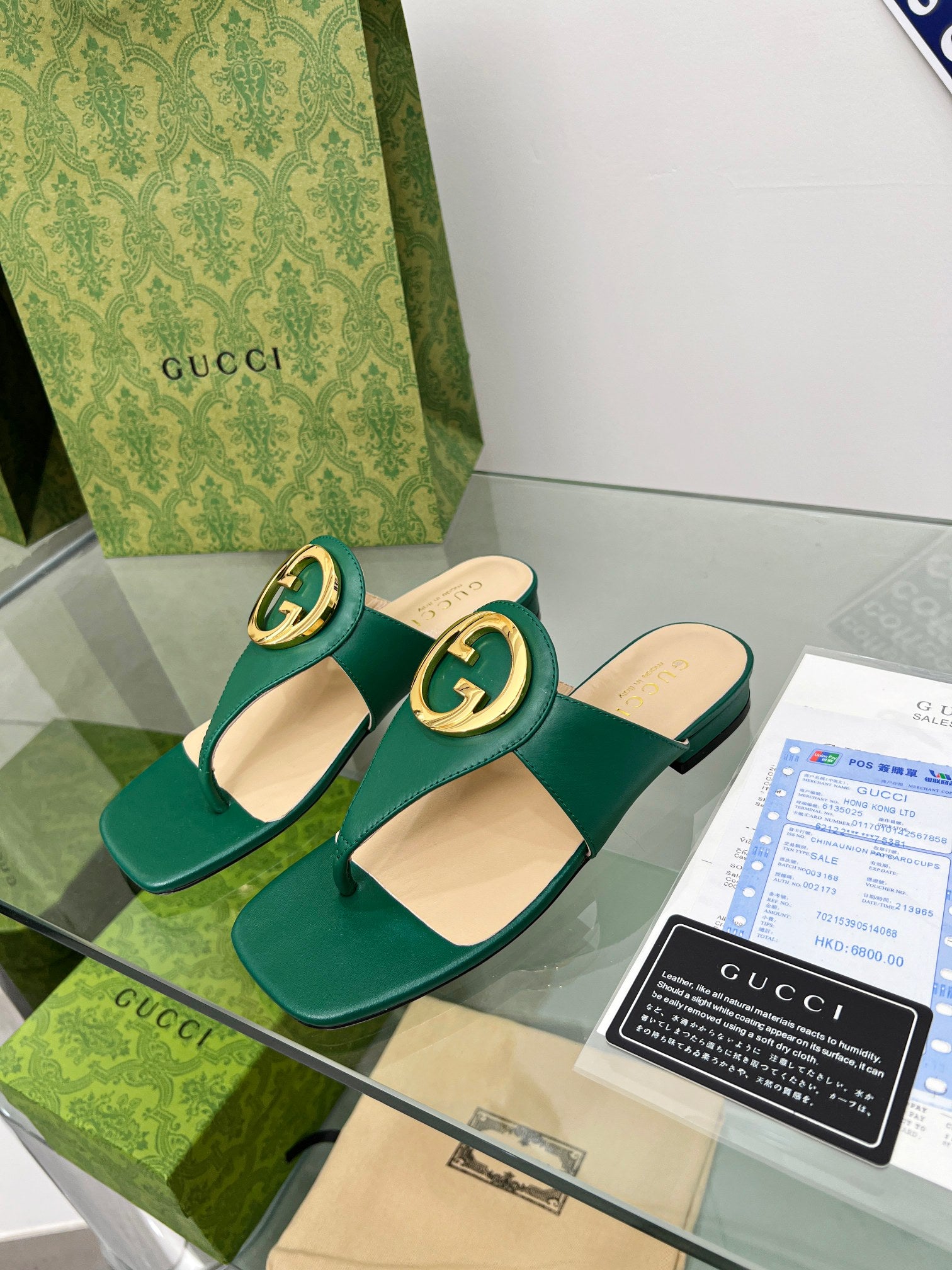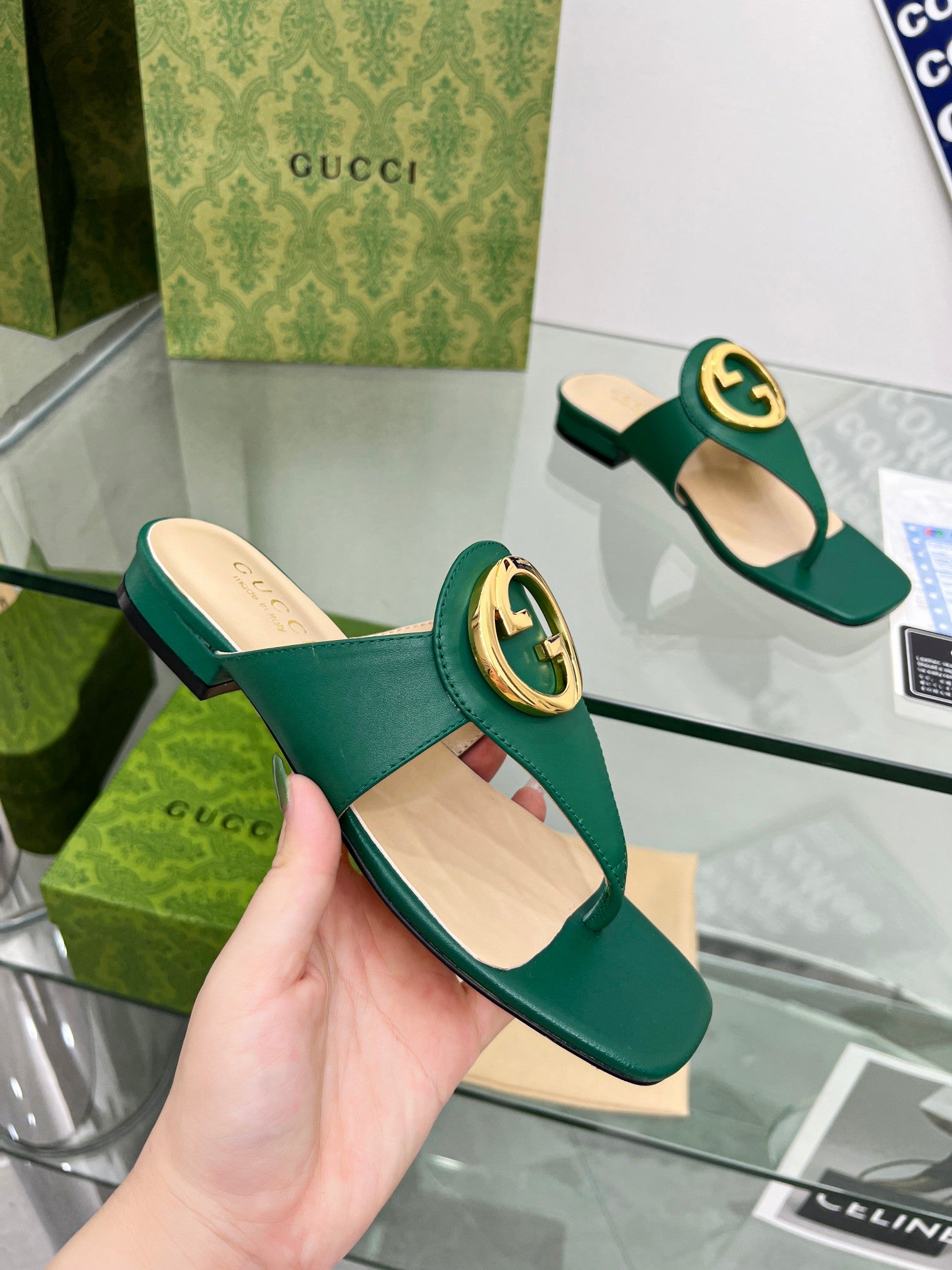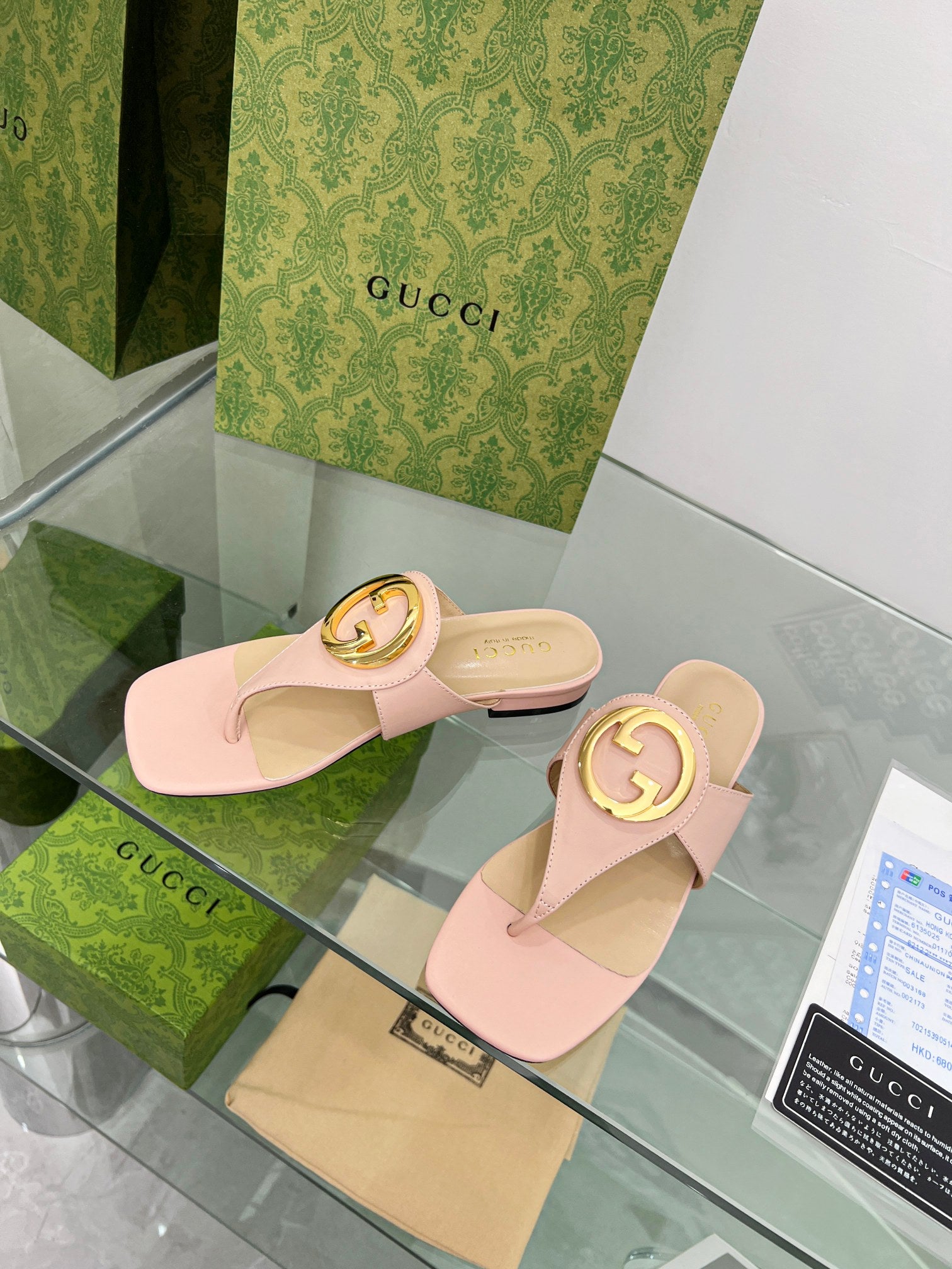 2023 Gucci-Inspired Square Toe Flip-Flops – Rubber or Leather Sole