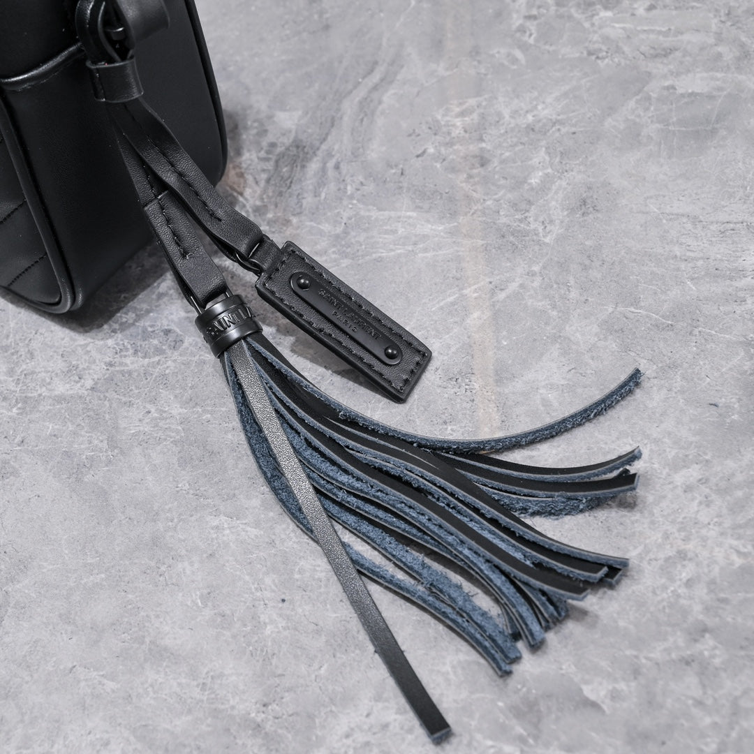 From the Genuine Leather Series, the Lou Camera Bag in all-black is the ultimate blend of luxury, precision, and everyday style. Expertly crafted from 100% imported Italian calf leather, this piece mirrors the original down to every detail — made using a high-fidelity mold from Hong Kong ZP studios. Featuring a sleek adjustable strap and a chic tassel charm, it's a true statement of craftsmanship and understated elegance.
