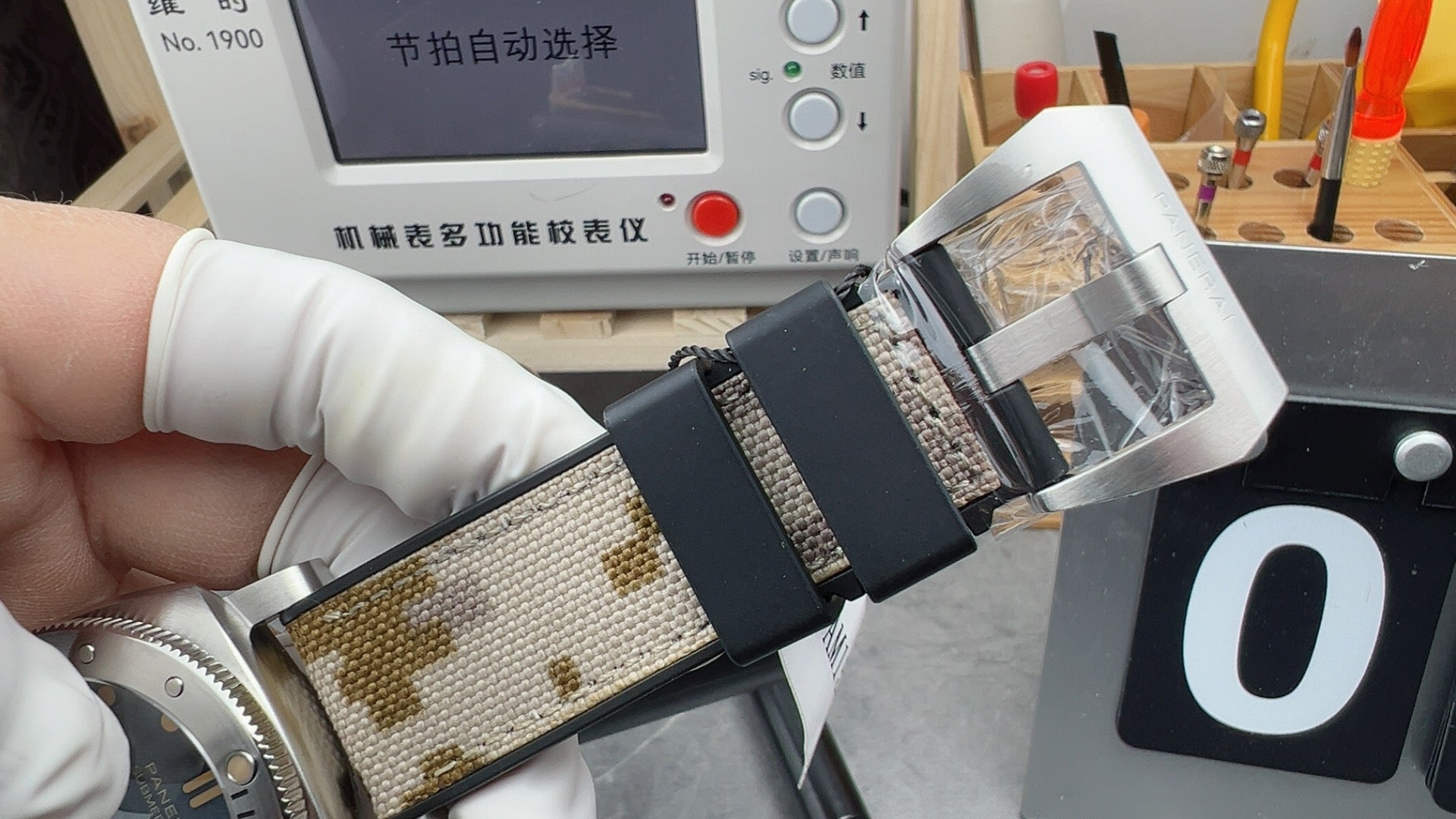 Bi-material camouflage textile and rubber strap