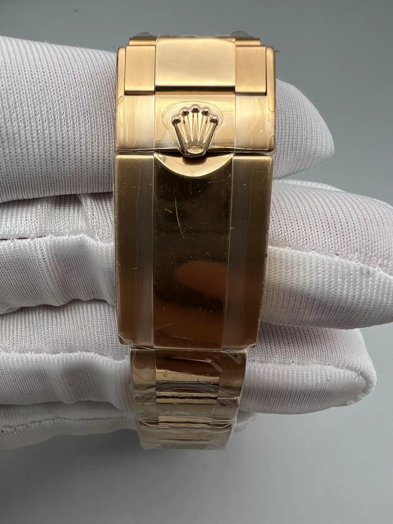 Elegant rose gold-style Daytona with 4130 movement and full 904L construction for lasting luxury.
