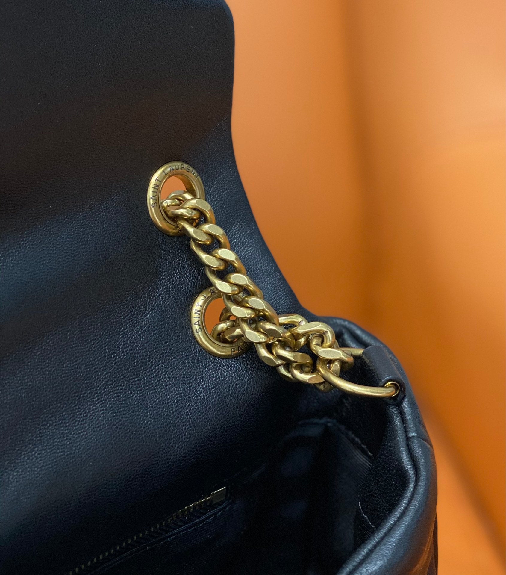 Timeless elegance meets modern edge with the CALYPSO 734153 Chain Bag by YSL. Available in classic black and clean white, this exquisite piece is crafted from imported Italian lambskin—known for its ultra-soft, supple texture. The bag features YSL’s signature front logo, paired with a sleek matte brushed gold-tone chain strap and grommet hardware for a minimalist yet luxurious touch.
