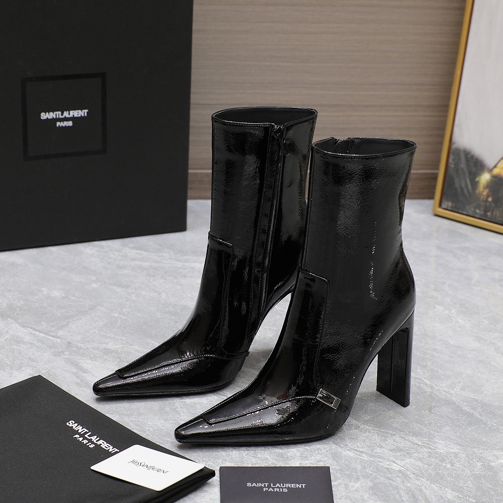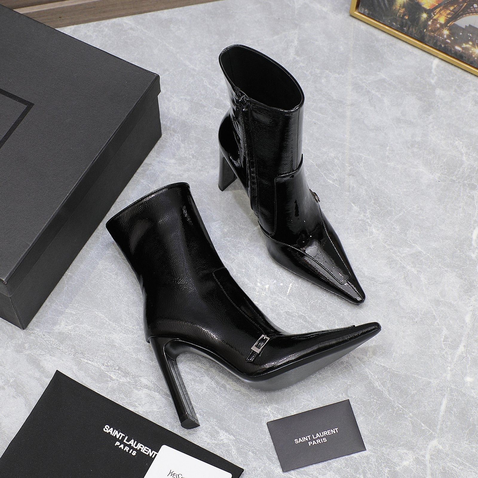 Step into power with these stunning YSL-style boots featuring a 9cm heel and luxurious crinkled patent leather. Designed to turn heads, their bold silhouette and high-fashion finish make them the perfect statement piece for confident, stylish walks.