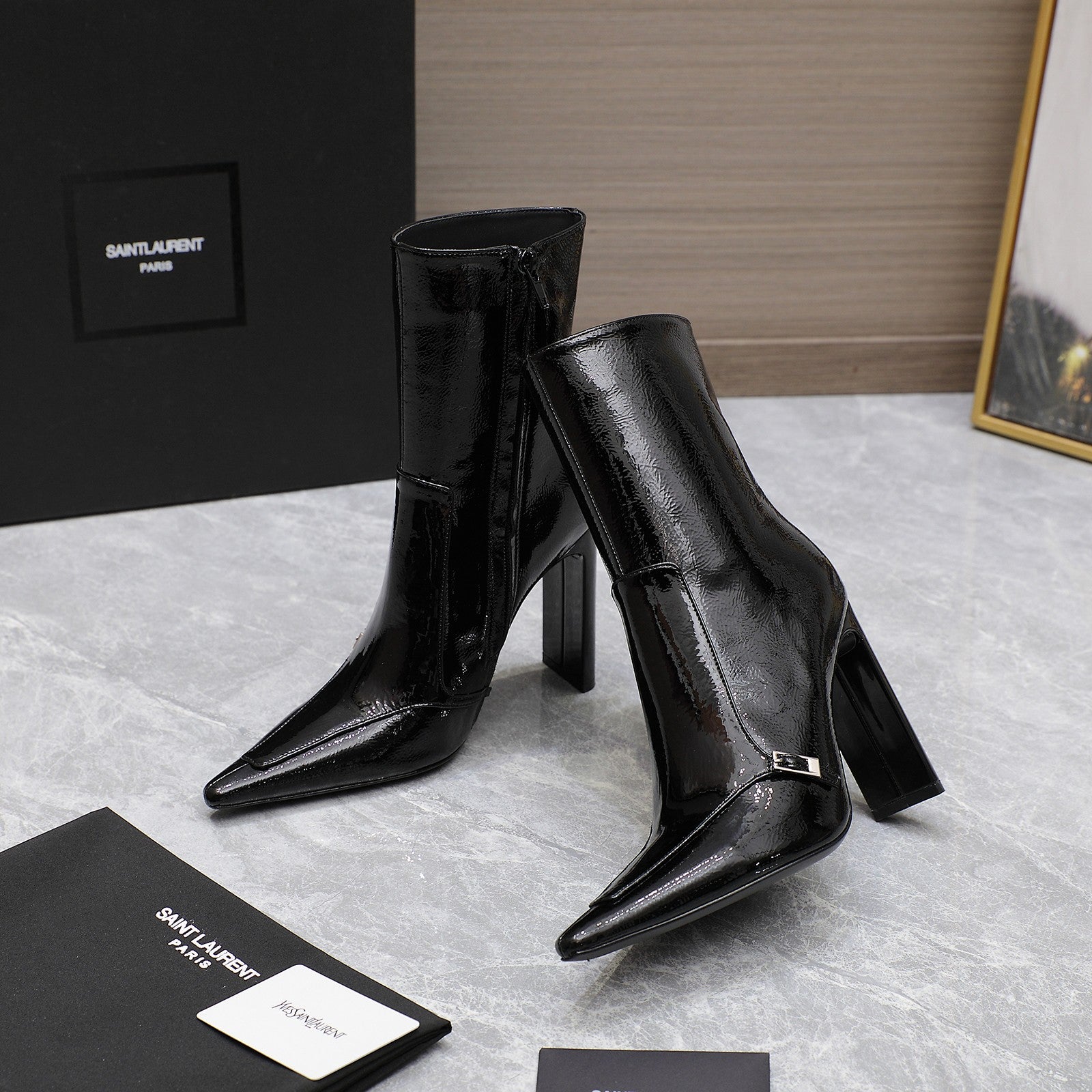 YSL-Inspired 2024 Fall/Winter Crinkled Patent Leather Boots